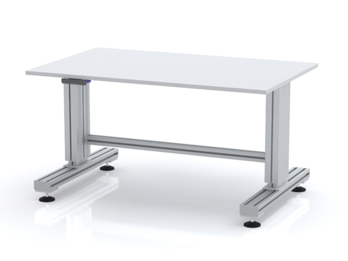 The SM two-leg electric lift system offers 15.75” (400 mm) of height adjustment for medium-duty base frames and workstations. Each anodized aluminum column features 8 mm T-slots on three sides for flexible integration. Supplied as a complete, ready-to-install kit with two columns, remote, and controller.