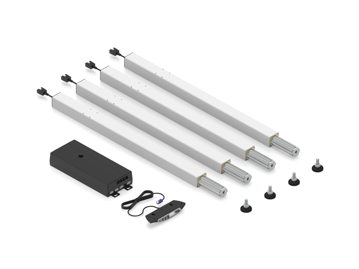 4x spindle-driven linear SLG.3 1340 with 6 ft cord, 1 x iSMPS controller with gravity sensor, 1x  10 ft power cord, 1 x Memory remote SCT T6, 4 x leveling feet M 10×25.